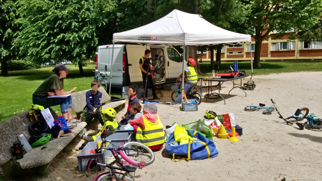 Notre atelier mobile s’installe en pied d’immeuble ou sur la place publique. Nous apportons tous les outils et pièces détachées nécessaires.